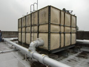 FRP受水槽とは、マンションやオフィス、工場等の屋上や敷地の隅にある、
